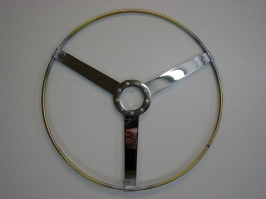 Alle Metallteile wurden neu verchromt. Es wurde ein neuer, gewickelter Holzkranz efertigt, der auch die Streben abdeckt. Die Form wurde dem Original entsprechend ausgestaltet. Der Holzkranz wurde 10-Schichtig mit schwarzem Hochglanzlack lackiert. Hierdurch erhält dieses Lenkrad seine Kunststoffoptik, und einen besonderen tiefen Glanz.