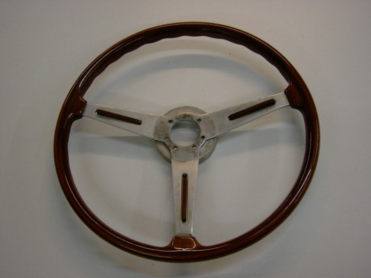 Bei diesem Lenkrad wurde der Holzkranz, und die Holzteile der Hupentaste restauriert. Das Aluminium haben wir geschliffen und Hochglanz poliert. Fehlende Holzstücke wurden durch passende ersetzt, und Risse ausgeleimt. Alle Holzteile wurden anschließend komplett geschliffen, und mit einem 10-Schichtigen Lackaufbau in Hochglanz versehen. Das Zusammenspiel von Hochglanz lackiertem Mahagoniholz und poliertem Aluminium verleiht diesem Lenkrad seinen typischen Charme.